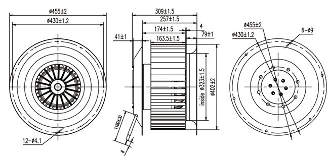 单进风前倾式草莓视频下载APP根据风机外形可分为蜗壳前倾式草莓视频下载APP和常规前倾式草莓视频下载APP两种。蜗壳前倾式草莓视频下载APP共有120mm、133mm、140mm、150mm、160mm、180mm等六种。常规前倾式草莓视频下载APP有200mm、225mm、250mm、280mm、315mm、355mm、400mm、450mm等八种。