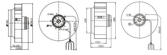 ②组成部件:高效外转子交流电机、镀锌钢板叶轮、免维护深沟球滚珠轴承、静电粉末喷塑转子
