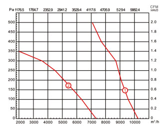 ①性能参数:由4极和6极额定电压为380-400V,频率50Hz的三相异步电机组成,最大风量为10250m3/h和7300m3/h。