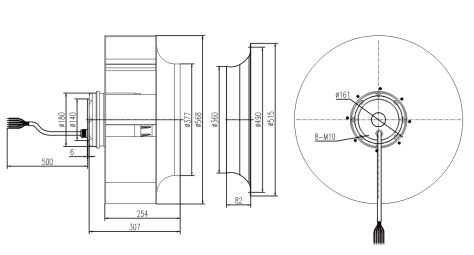 ②组成部件:高效外转子交流电机、后倾式圆弧形铝合金叶轮、免维护深沟球滚珠轴承、静电粉末喷塑转子。