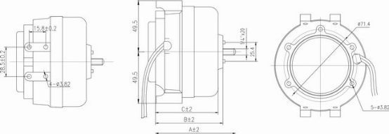 | 型号 | 额定电压 | 频率 | 输入功率 | 输出功率 | 额定电流 | 转向 | A mm | B mm | C mm |
